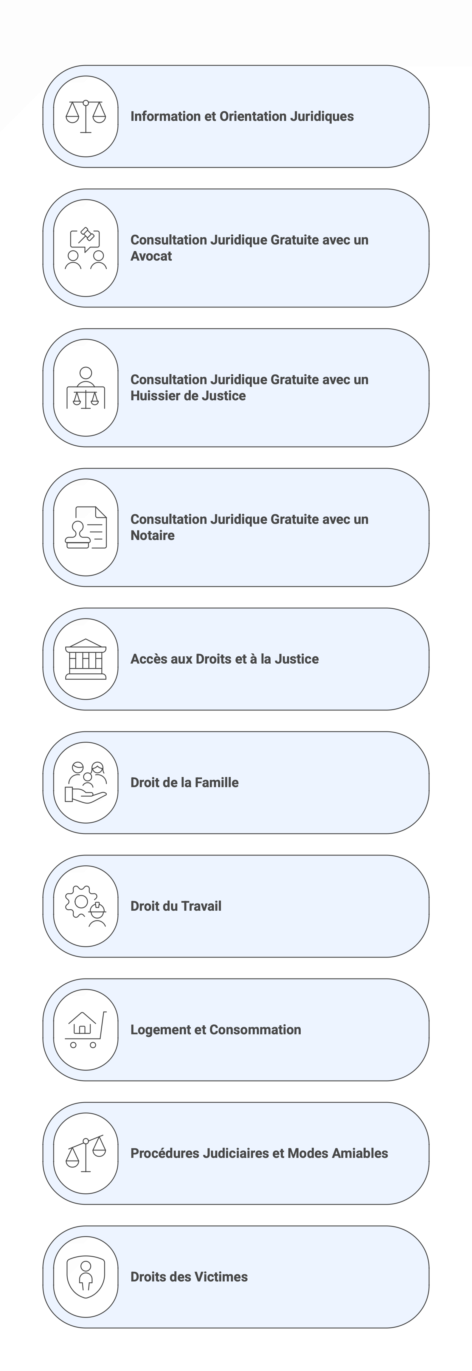 Toute personne peut avoir accès gratuitement à la connaissance de ses droits quelque soit le domaine juridique : famille, logement, travail, consommation, crédits etc. Des permanences tenues par les avocats du Barreau de Bastia sont accessibles avec ou sans rendez vous en divers points du département.